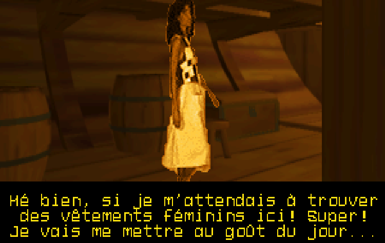 Orwellowska maksyma41 dotyczyła nieustannej walki o kontrolę nad przeszłością, co znajduje odzwierciedlenie również w licznych utworach SF o podróżach w czasie. Realizująca ów topos trzecia część tryptyku postkolonialnego autorstwa Muriel Tramis, Zagubiona w czasie, ukazała się w 1993 roku, po przejęciu Coktel Vision przez amerykańską Sierrę On-Line. Przejęcie to wpłynęło na uogólnienie dyskursu postkolonialnego, choć Tramis zachowała wpływ na fabułę, współpracując z Corinne Carrère, z którą wcześniej pracowała nad grami edukacyjnymi w Coktelu. Początkowo gropowiastka spotkała się z ciepłym przyjęciem. Christian Roux z magazynu „Génération 4” twierdził, że Tramis „pozwoliła nam odkryć na nowo Karaiby, zaskakując nas licznymi szczegółami o wartości edukacyjnej”42. Opinie o Zagubionej w czasie stopniowo jednak traciły na entuzjazmie — przykład współczesny: