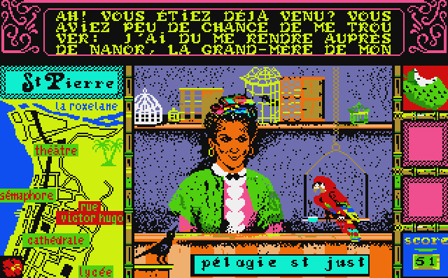 Wytwórnia Coktel Vision zyskała rozgłos głównie dzięki grom edukacyjnym z serii Adi i Adibou1. Jednakże działalność studia, założonego w 1985 roku przez Rolanda Oskiana, Arnauda Delrue i Mathieu Marciaka, była znacznie szersza. W początkowym okresie firma skupiała się na adaptacjach komiksów, co nie przyniosło oczekiwanych rezultatów. Przykładowo, Asteriks u Reszehezady (Astérix chez Rahazade, 1987), oparty na tomie René Goscinnego i Alberta Uderza, odstraszał niewygodnym sterowaniem oraz nieudolnie łączył elementy zręcznościowe z mechaniką gier paragrafowych. Podobne zarzuty można było postawić westernowemu Widmu ze złotymi kulami (Blueberry: Le Spectre aux balles d’or, 1987), opartemu na komiksie Jean-Michela Charliera i Jeana Girauda. Dopiero dzięki twórczości martynikańskiej projektantki Muriel Tramis wytwórnia przezwyciężyła kryzys i zaczęła odnosić pierwsze prestiżowe sukcesy. Szczególną uwagę poświęcę współpracy Tramis z Pierre’em Gilhodes’em, okresowi szczytowej popularności Coktel Vision. Wspomnę także o wkładzie innych twórców, takich jak Yannick Chosse, Marianne Rougeulle i Rachid Chebli.